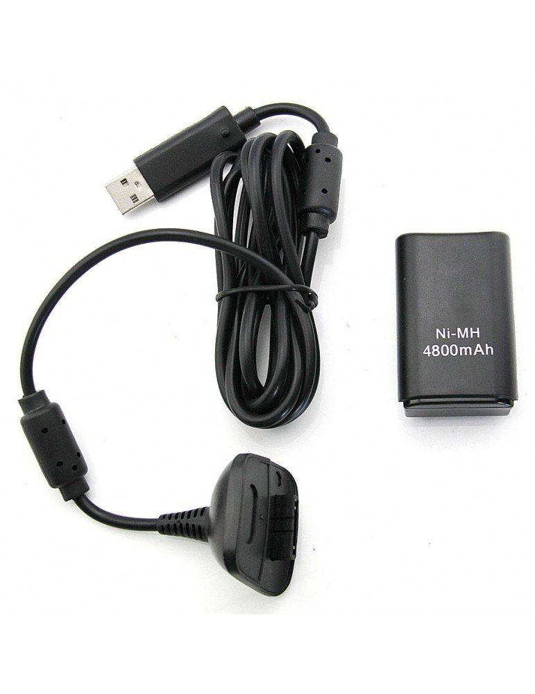 BATTERY 4800MAH & USB CHARGING CABLE XBOX 360 BLACK OEM