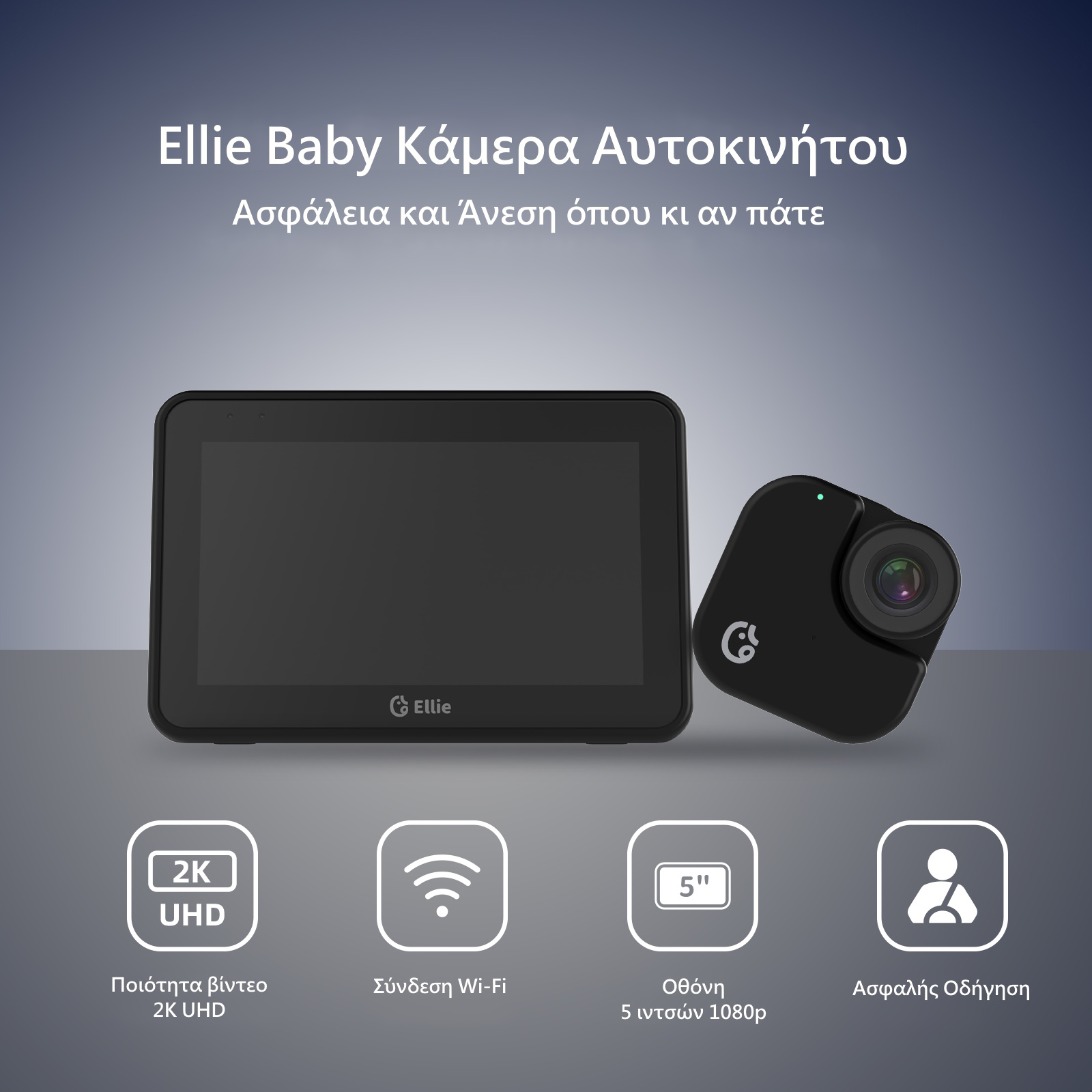 Κάμερα παρακολούθησης μωρού αυτοκινήτου Ellie Baby Car Monitor – η απόλυτη λύση για γονείς που θέλουν να συνδυάσουν ασφαλή οδήγηση και ταυτόχρονη παρακολο΄΄υθηση του μικρού τους. Με ανάλυση 2K, οθόνη HD 5 ιντσών και διπλή κάμερα, προσφέρει ασυναγώνιστη εικόνα σε πραγματικό χρόνο, είτε πρόκειται για ένα είτε για δύο παιδιά. Ξεχάστε τους καθρέφτες αυτοκινήτου – αποκτήστε οπτική επαφή με το μωρό χωρίς να αποσπάται η προσοχή σας από τον δρόμο.Η Ellie Baby Car Monitor λειτουργεί ως ενδοεπικοινωνία αυτοκινήτου για μωρό, καθώς ενσωματώνει όχι μόνο κάμερες υψηλής ανάλυσης αλλά και αμφίδρομη επικοινωνία. Μέσω του ενσωματωμένου WiFi, συνδέεται με την εφαρμογή Ellie σε smartphone, προσφέροντας απομακρυσμένη παρακολούθηση, λειτουργία καταγραφής και ζωντανή εικόνα, όπου κι αν βρίσκεστε.Η εγκατάσταση είναι πανεύκολη και δεν απαιτεί εργαλεία. Η κάμερα τοποθετείται στο πίσω κάθισμα με ειδική βάση και η οθόνη στον πίνακα του οδηγού. Οι νυχτερινές λήψεις γίνονται με εξαιρετική ευκρίνεια χάρη στην τεχνολογία υπέρυθρης νυχτερινής όρασης, προσφέροντας ξεκούραστη και ασφαλή παρακολούθηση ακόμη και σε συνθήκες χαμηλού φωτισμού.Αξιοσημείωτο είναι ότι η συσκευή υποστηρίζει και dual-baby view, ιδανική για οικογένειες με δύο ή περισσότερα παιδιά. Παράλληλα, η δυνατότητα live παρακολούθησης με κλείδωμα ιδιωτικότητας και καταγραφή συμβάντων, την καθιστά ένα εργαλείο που ξεπερνά τις ανάγκες του καθημερινού parenting.Με μοντέρνο σχεδιασμό, έξυπνα χαρακτηριστικά και υψηλή ποιότητα υλικών, η Ellie Baby Car Monitor είναι η κάμερα παρακολούθησης μωρού αυτοκινήτου που εμπιστεύονται χιλιάδες γονείς παγκοσμίως. Εξασφαλίζει γαλήνη και ασφάλεια στις μετακινήσεις, είτε πρόκειται για την καθημερινή διαδρομή στο σχολείο είτε για ταξίδι.Χαρακτηριστικά: