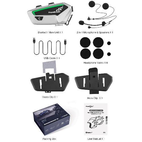 FreedConn FX Ενδοεπικοινωνία (Μπατ. 1100mAh/Αδιάβροχο IP67) Μονή για Κράνος Μηχανής Bluetooth 5.0 2000m για έως 8 χρήστες Silver