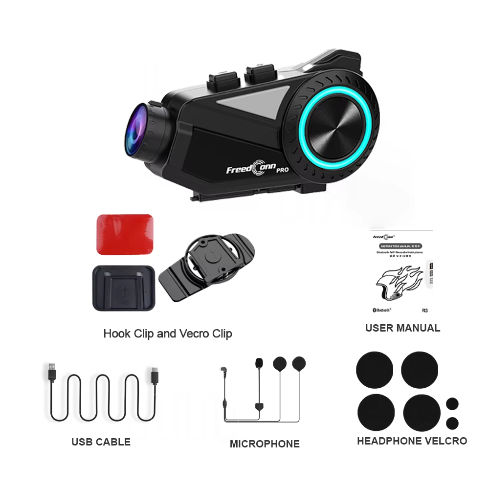 Κάμερα μηχανής με ενδοεπικοινωνία FreedConn R3 Pro – μια έξυπνη και ολοκληρωμένη λύση για κάθε μοτοσυκλετιστή που θέλει να συνδυάσει ασφάλεια, καταγραφή της διαδρομής και επικοινωνία με την ομάδα του. Το συγκεκριμένο μοντέλο αποτελεί το απόλυτο εργαλείο για βιντεοσκόπηση 2K (1440p), ενδοεπικοινωνία Bluetooth μεταξύ έως 6 αναβατών σε απόσταση έως και 1000 μέτρων, αλλά και ασύρματη συνδεσιμότητα μέσω WiFi για άμεση μεταφορά αρχείων.Εξοπλισμένη με ποιοτικό φακό Sony και αναβαθμισμένα ακουστικά Sony Hi-Res D7, η συσκευή προσφέρει εξαιρετική ποιότητα ήχου και εικόνας. Ο ήχος αποδίδεται σε στέρεο με πλούσιες λεπτομέρειες, ενώ το μικρόφωνο περιλαμβάνει τεχνολογία μείωσης θορύβου έως και 95%, διασφαλίζοντας καθαρές συνομιλίες ακόμα και σε μεγάλες ταχύτητες.Η κάμερα μηχανής με ενδοεπικοινωνία R3 Pro είναι κατασκευασμένη με γνώμονα την αντοχή και την πρακτικότητα. Διαθέτει περιστρεφόμενο σώμα 360° και ρυθμιζόμενο φακό 30°, επιτρέποντας απόλυτο έλεγχο στη γωνία λήψης. Επιπλέον, η λειτουργία αυτόματης αποθήκευσης σε περίπτωση σύγκρουσης (G-sensor) εξασφαλίζει ότι δεν θα χαθεί κανένα κρίσιμο πλάνο από ατύχημα ή απότομη αλλαγή κατεύθυνσης.Με βαθμό στεγανότητας IP65, η συσκευή είναι ανθεκτική στη βροχή και τη σκόνη, κατάλληλη για κάθε καιρό. Η μπαταρία χωρητικότητας 2000mAh εξασφαλίζει 6-7 ώρες συνεχούς εγγραφής βίντεο και έως 42 ώρες αναπαραγωγής μουσικής. Η παρεχόμενη κάρτα SD 64GB δίνει άμεση δυνατότητα χρήσης χωρίς επιπλέον κόστος.Ο φωτιζόμενος LED δακτύλιος 7 χρωμάτων προσφέρει μοναδική εμφάνιση και λειτουργική ένδειξη κατάστασης λειτουργίας. Μέσω της εφαρμογής για smartphone, μπορείς να βλέπεις σε πραγματικό χρόνο τις εγγραφές, να κατεβάζεις βίντεο και να αλλάζεις ρυθμίσεις χωρίς καλώδια ή σύνδεση με υπολογιστή.Η συσκευή περιλαμβάνει πολλαπλά πλήκτρα για έλεγχο της έντασης, αλλαγή τραγουδιών, ενεργοποίηση ενδοεπικοινωνίας και εγγραφής, καθώς και USB θύρα και υποδοχή κάρτας TF. Συμβατή με τα περισσότερα κράνη και άλλες συσκευές Bluetooth τρίτων κατασκευαστών.