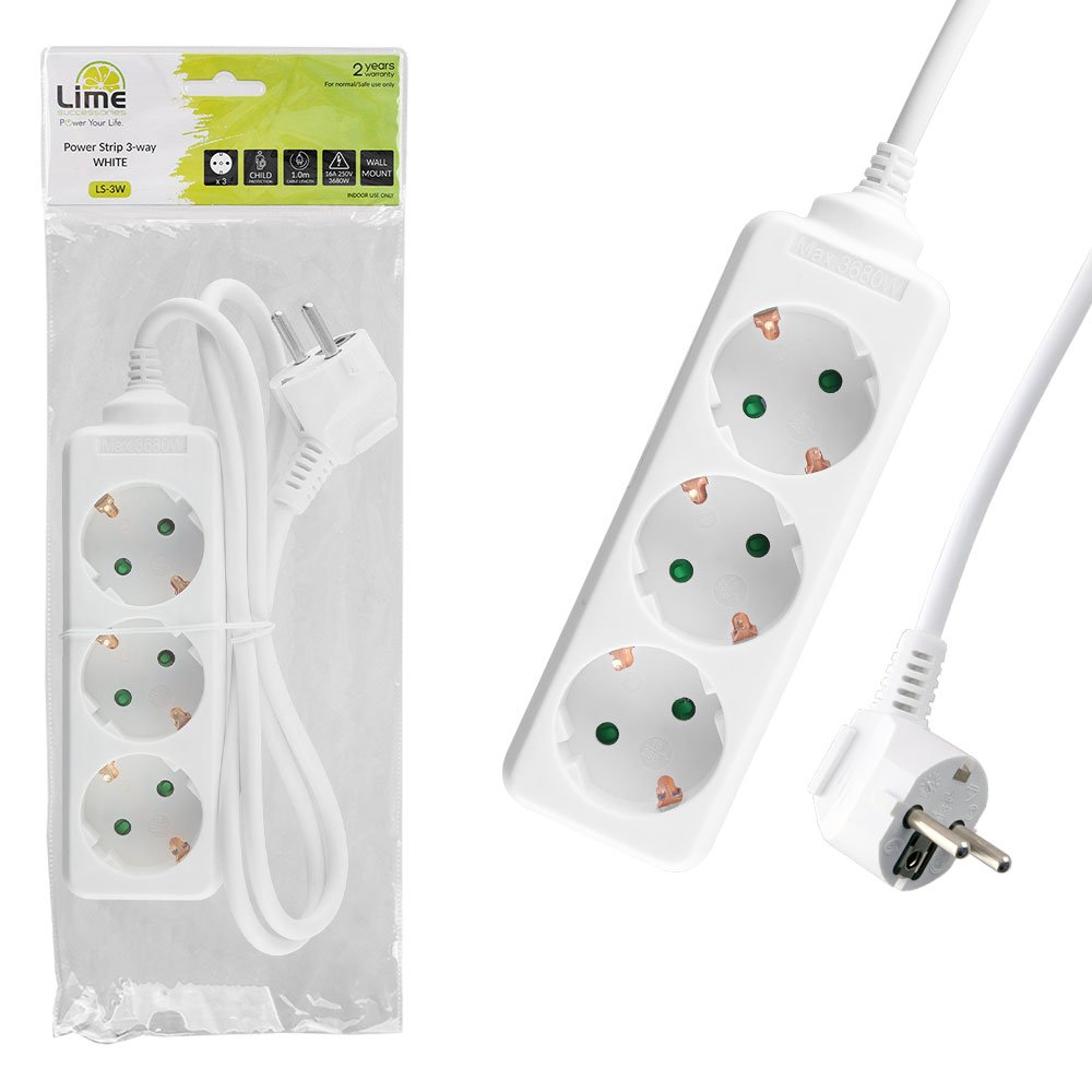 LIME ΠΟΛΥΠΡΙΖΟ 3 ΣΟΥΚΟ LS-3W 16A ΜΕ ΠΑΙΔΙΚΗ ΠΡΟΣΤΑΣΙΑ (3×1.0mm) 1.0m ΑΣΠΡΟ