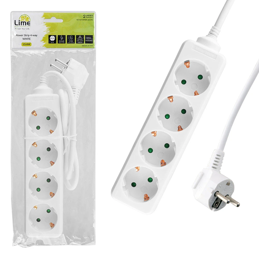 LIME ΠΟΛΥΠΡΙΖΟ 4 ΣΟΥΚΟ LS-4W 16A ΜΕ ΠΑΙΔΙΚΗ ΠΡΟΣΤΑΣΙΑ (3×1.0mm) 1.0m ΑΣΠΡΟ