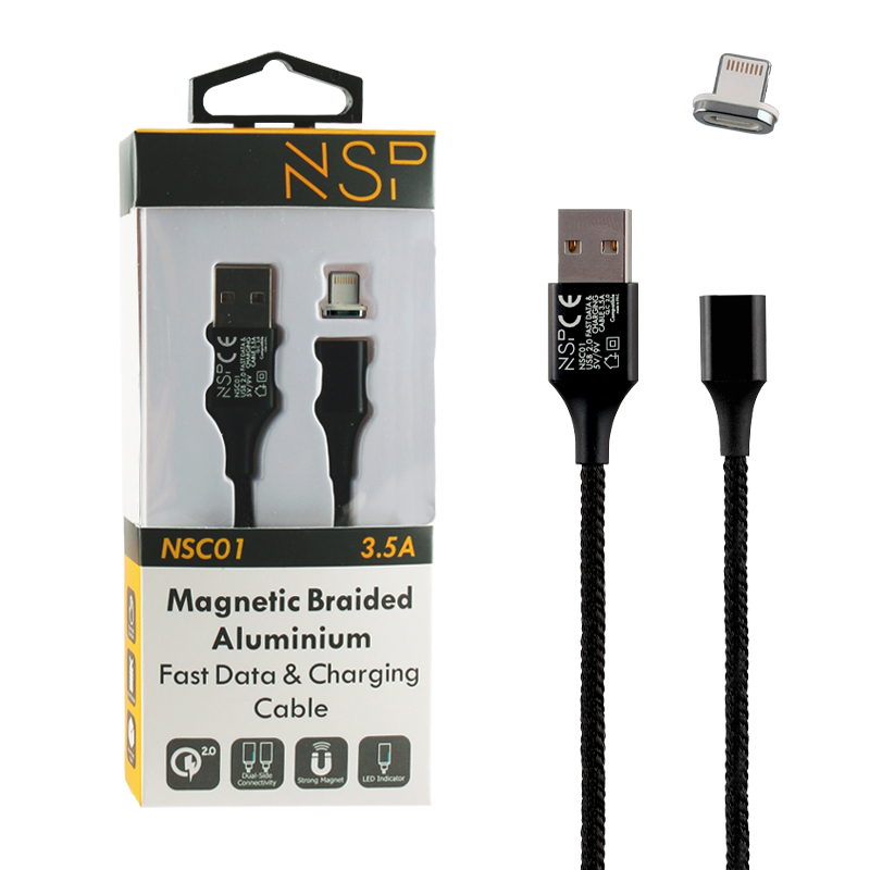 NSP LIGHTNING USB ΦΟΡΤΙΣΗΣ-DATA MAGNETIC BRAIDED NSC01 3.5A QC 2.0 1m BLACK