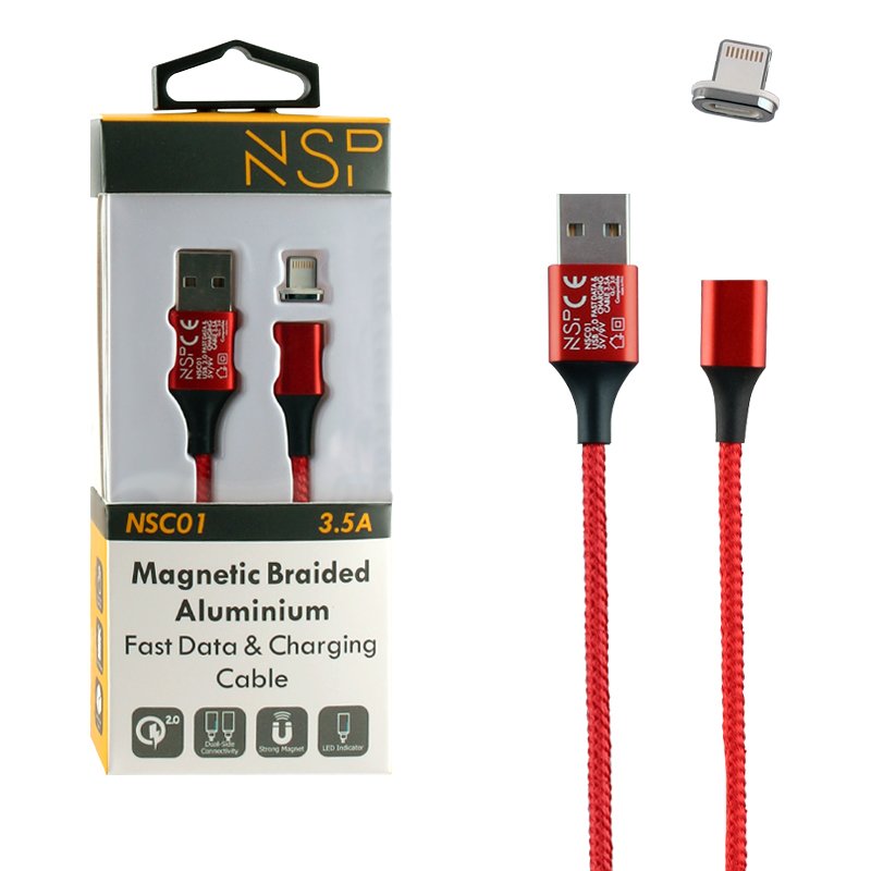 NSP LIGHTNING USB ΦΟΡΤΙΣΗΣ-DATA MAGNETIC BRAIDED NSC01 3.5A QC 2.0 1m RED