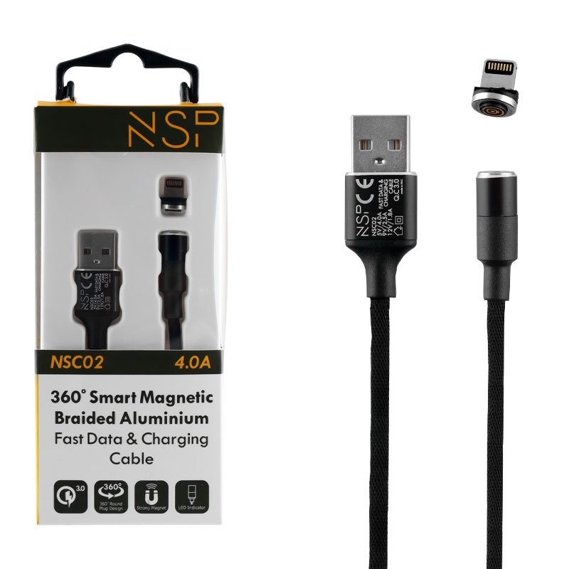 NSP LIGHTNING USB ΦΟΡΤΙΣΗΣ-DATA MAGNETIC BRAIDED NSC02 4.0A QC 3.0 1.2m BLACK