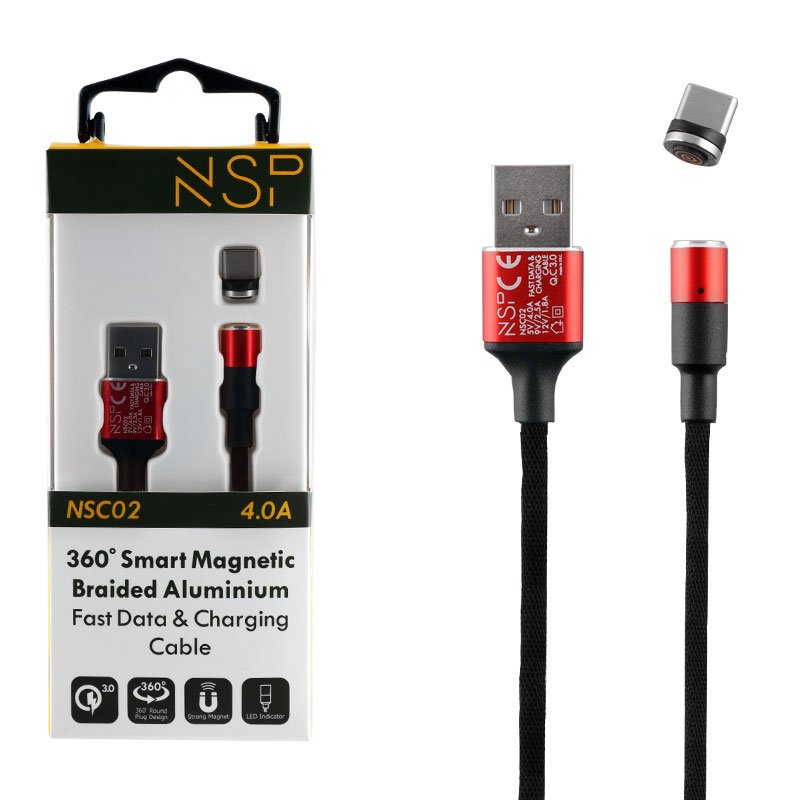 NSP TYPE C USB ΦΟΡΤΙΣΗΣ-DATA MAGNETIC BRAIDED NSC02 4.0A QC 3.0 1.2m RED