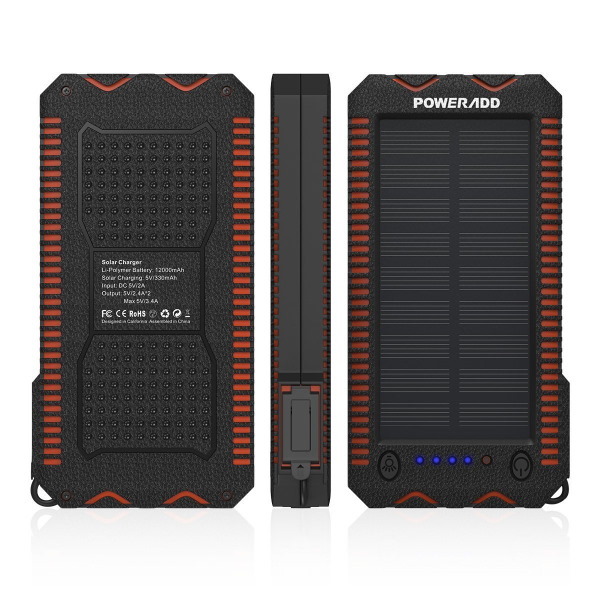 POWERADD Apollo 2 12000mAh Αδιάβροχο Power Bank Ηλιακός Φορτιστής Solar Panel (MP-3103BK)