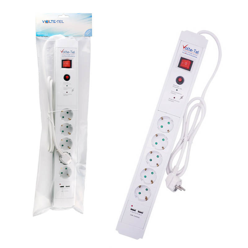 VOLTE-TEL ΠΟΛΥΠΡΙΖΟ 5 ΣΟΥΚΟ ΜΕ ΔΙΑΚΟΠΤΗ-2 USB 2.1A – ΠΡΟΣΤΑΣΙΑ ΥΠΕΡΤΑΣΗΣ (3×1.5mm) 1.5m ΑΣΠΡΟ