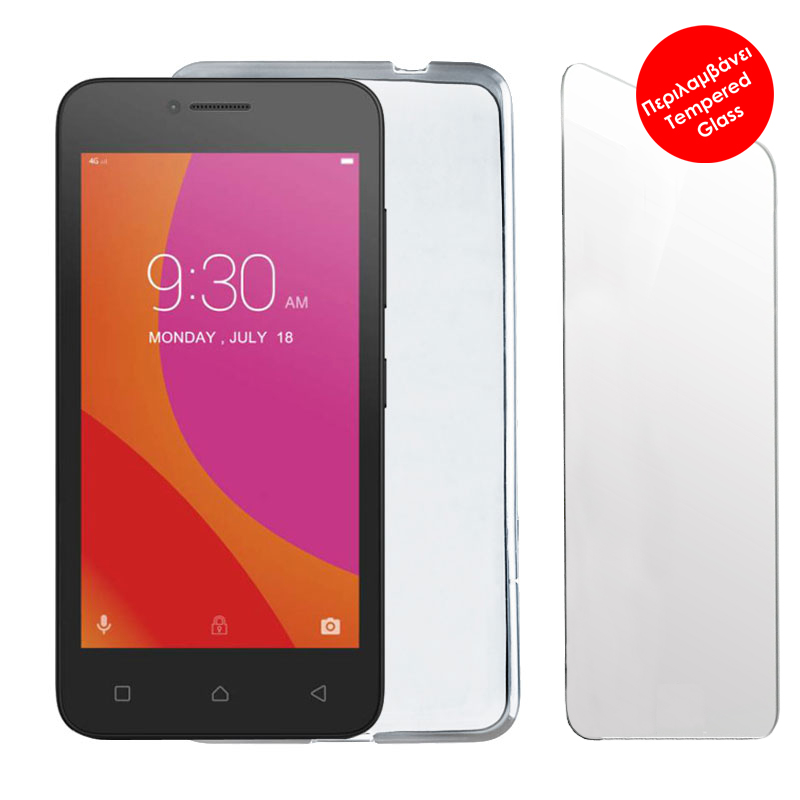 VOLTE-TEL COMBO LENOVO A PLUS A1010 4.5″ TEMPERED 0.30 + ΘΗΚΗ SLIMCOLOR WHITE
