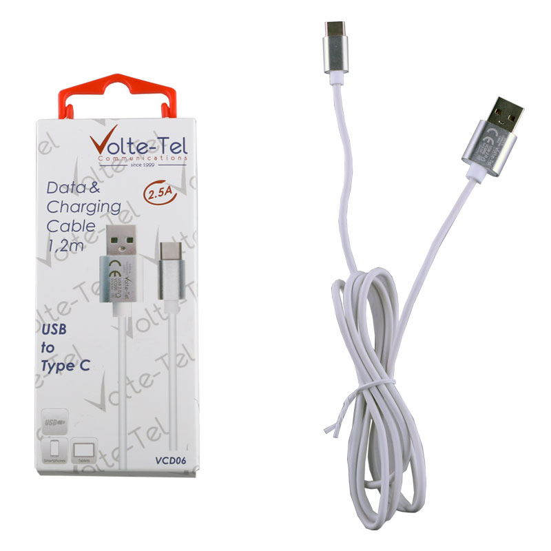 VOLTE-TEL TYPE C->USB 2.0 ALUMINIUM 2.5A ΦΟΡΤΙΣΗΣ-DATA 1.2m VCD06 WHITE